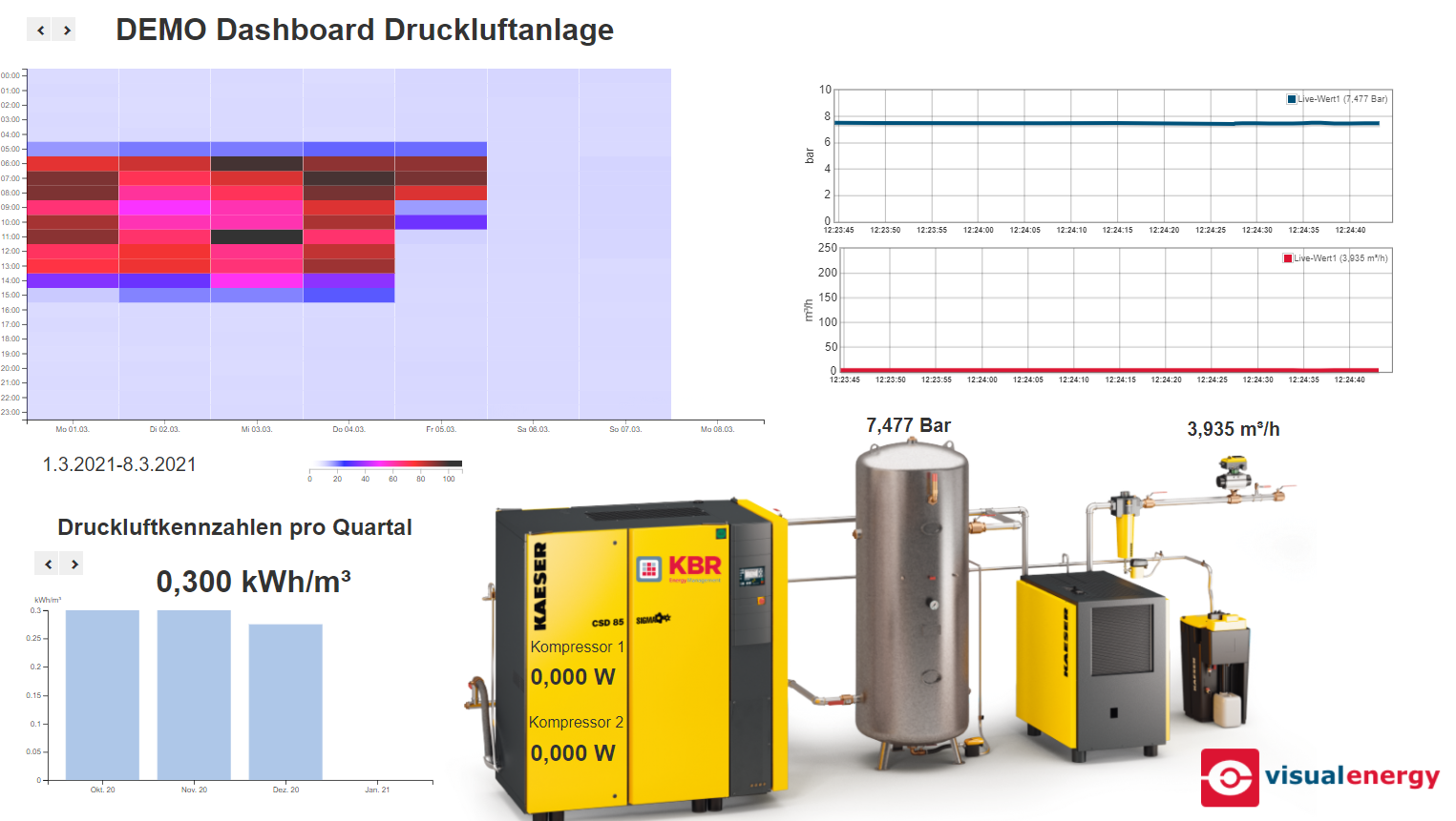 Ein Dashboard ist eine individuell erstellte Webseite die entweder innerhalb der visual energy Anwendung angezeigt wird, oder auch ohne Benutzeranmeldung außerhalb von visual energy, z.B. im Intranet zugänglich ist. Zur Erstellung dient ein Dashboard Designer.