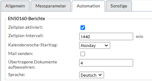 - Das Abfrage-Interval sollte 1.440 Minuten betragen, damit einmal täglich bei dem Gerät die für den Bericht notwendigen Daten abgerufen werden.