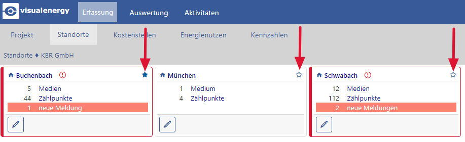 Favoriten ermöglichen einen schnellen Zugriff auf häufig verwendete Objekte (Diagramme, Dokumente, Zählpunkte...). Jeder Anwender pflegt seine eigenen Favoriten. Eine globale Definition von Projektfavoriten ist aktuell nicht vorgesehen.