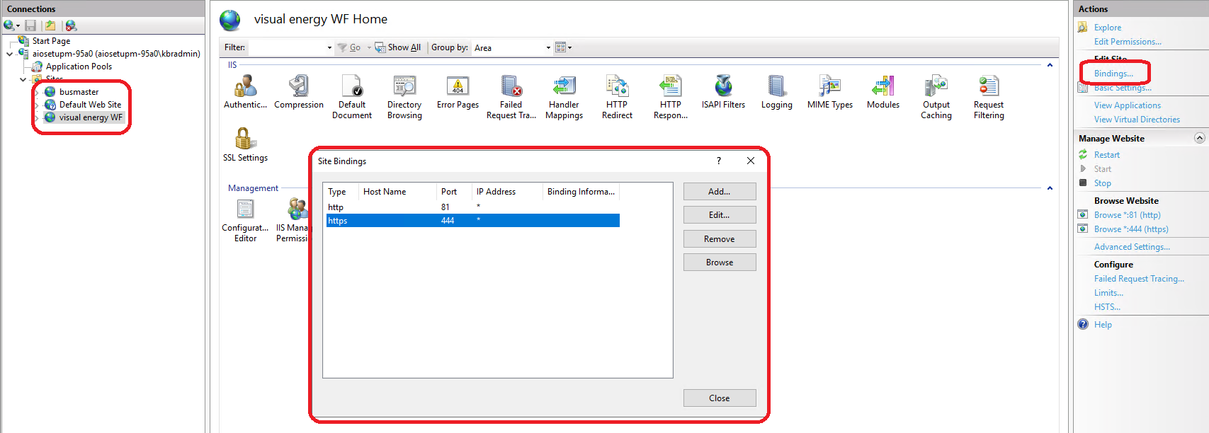 Die Bindungs-Zuordnung kann mit nachfolgender Beschreibung jederzeit in den Einstellungen des IIS geändert werden, falls dies erforderlich werden sollte.
