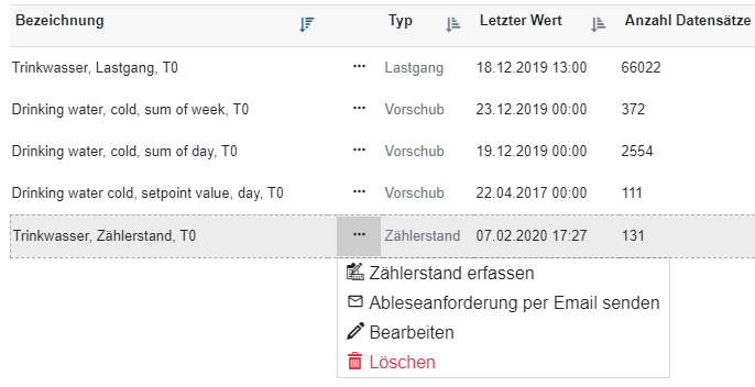 - Wählen Sie eine Messgröße vom Typ Zählerstand und öffnen Sie das Kontextmenü